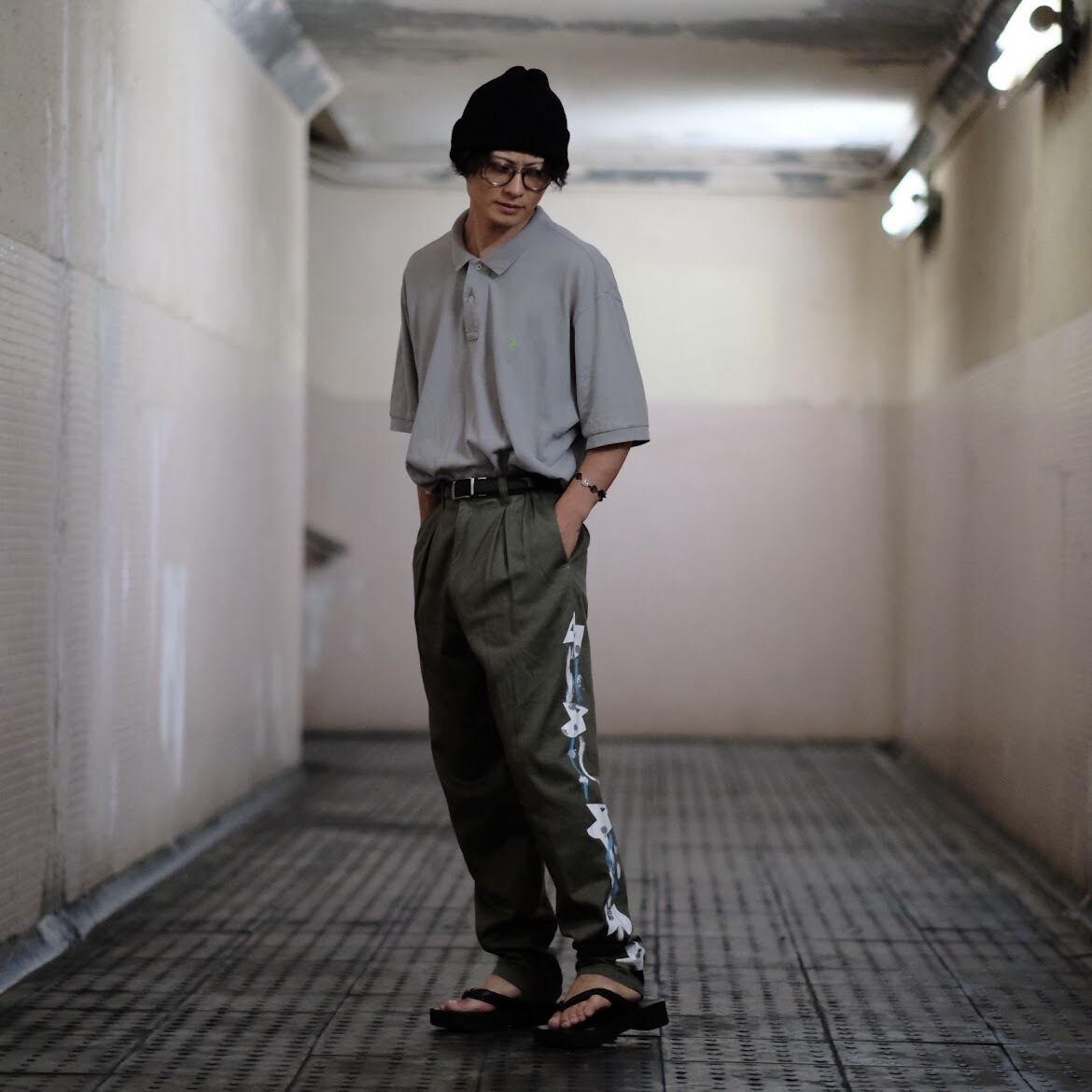 カーゴパンツをイメージする深いカーキには珍しく、2タック入りデザイン。
